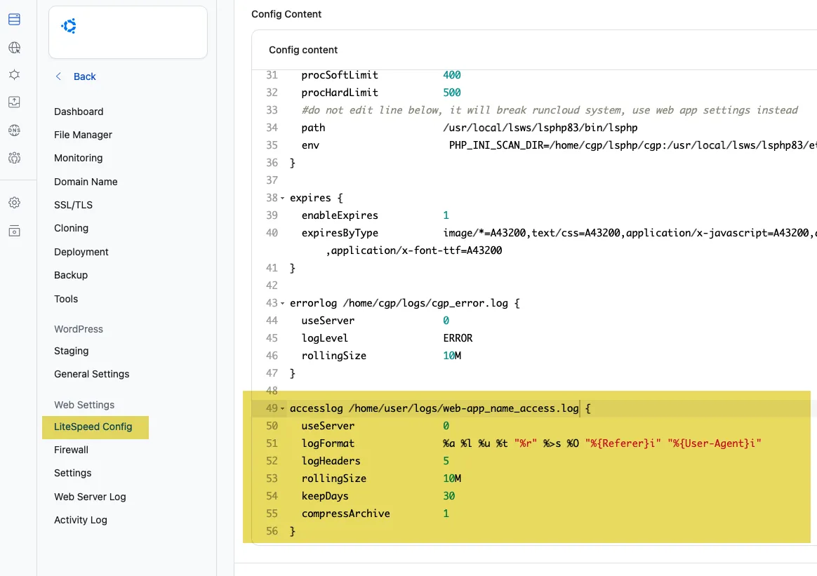Then finally add into the web app client’s LiteSpeed config the parameters to see the real IP addresses of the visitors in the logs.